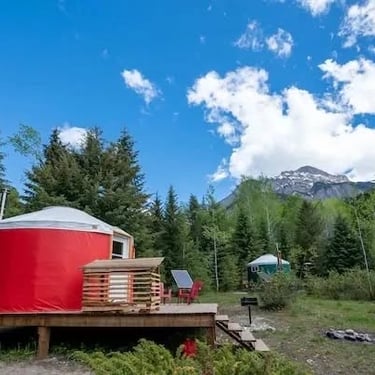 🏔️ 150 acres of private wilderness in the Blaeberry Valley, 20 minutes from Golden. Authentic yurt at the back of the property, direct view of the mountains. Three private waterfalls accessible via a private trail. Thomson Falls and several recognised trails within 3 km. Direct vehicle access. Total isolation, authentic wildlife and the Canadian Rockies as a playground.